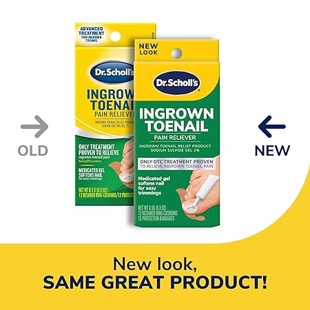 Dr. Scholl's Ingrown Toenail Pain Reliever, 0.3oz // Medicated Gel Softens Nails for Easy Trimming and Foam Ring and Bandage Protect the Affected Area White