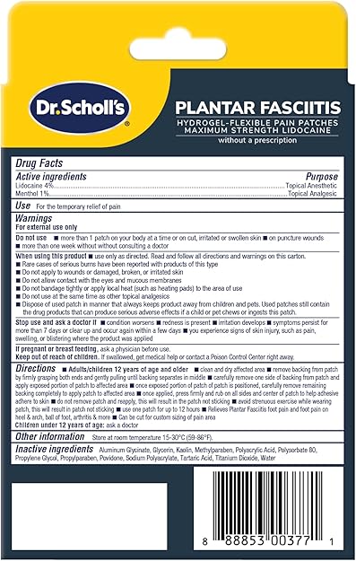 Dr. Scholl's Plantar Fasciitis Pain Patches with Hydrogel Flexible Technology, 8 Ct // Clinically Tested 12-Hour Daily Pain Relief - Contours to Your Foot - with Lidocaine & Menthol, 8 Treatments