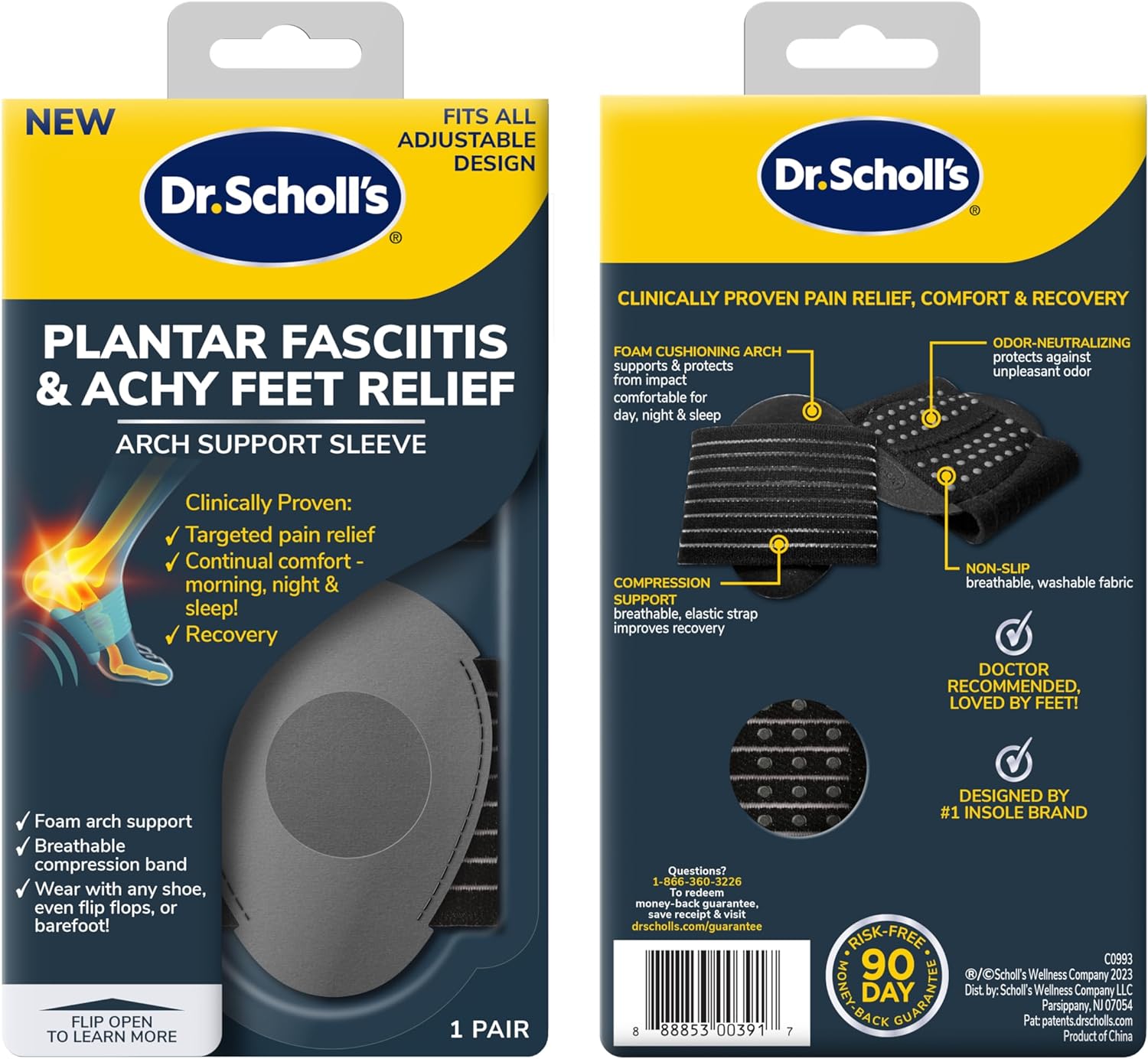 Dr. Scholl's® Plantar Fasciitis & Achy Feet Relief Arch Support Sleeve, Cushioned Arch Support, Compression Band, Foam Pad Insert, Non Slip Sole, All-day Wear Morning to Night, Unisex 1 Pair