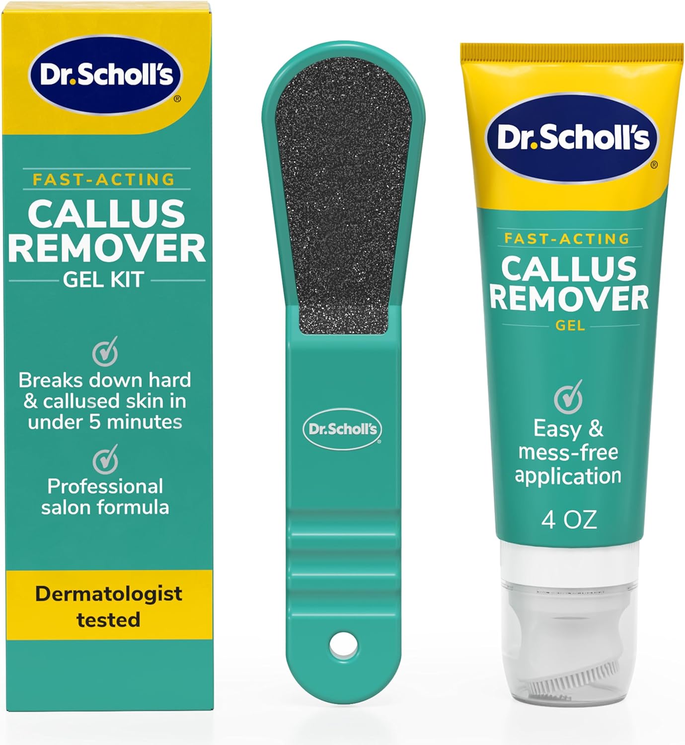 Dr. Scholl's Fast Acting Callus Remover Gel Kit, Hard Skin Removal, Smooth Soft Feet in Minutes, Salon Professional Formula, Mess Free Application, Exfoliating Foot File Pedicure Tool Included
