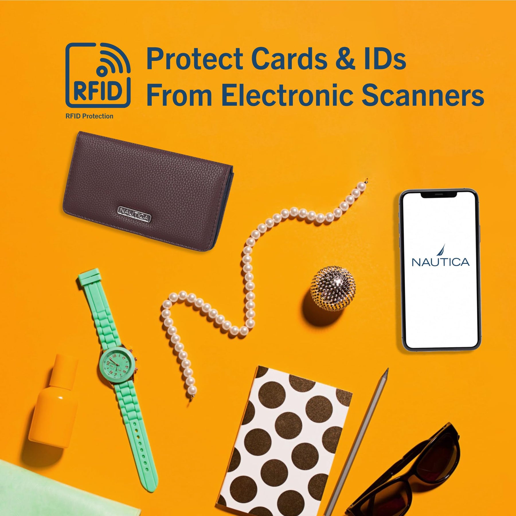 Nautica Seaside Slim Womens Wallet RFID Blocking Credit Card Holder, Coin Purse, Checkbook Organizer Clutch, Small Vegan Leather Wallet for Travel