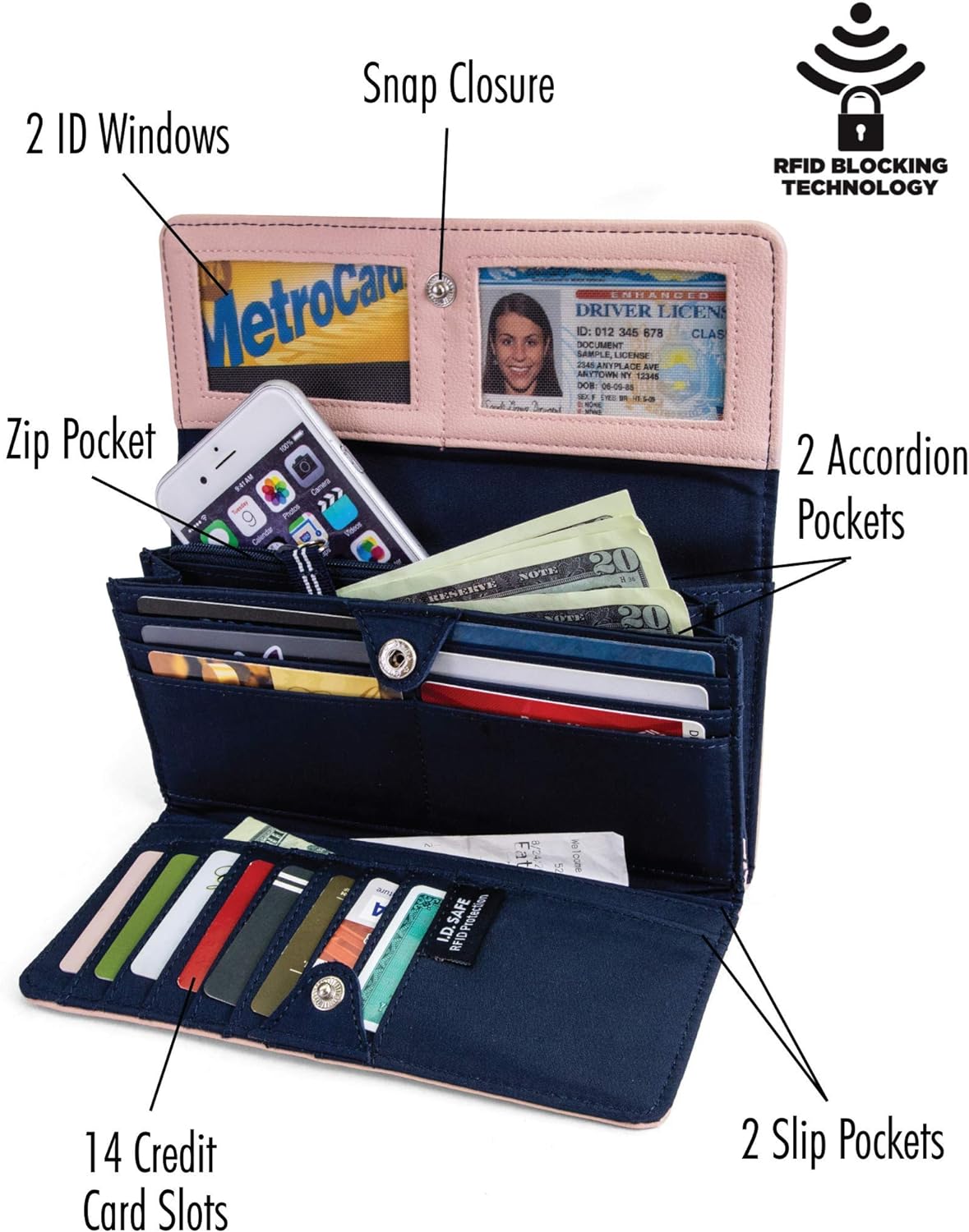 Nautica Women's Perfect Carry-All Money Manager RFID Blocking Wallet Organizer Black