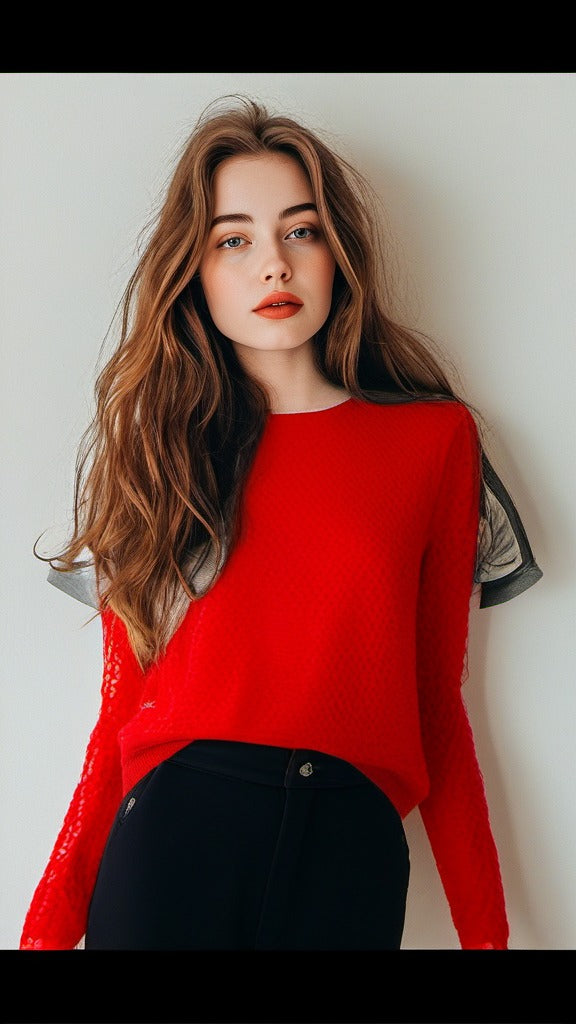 Guess Women Long Sleeve Red Pullover with Dantelle - Small
